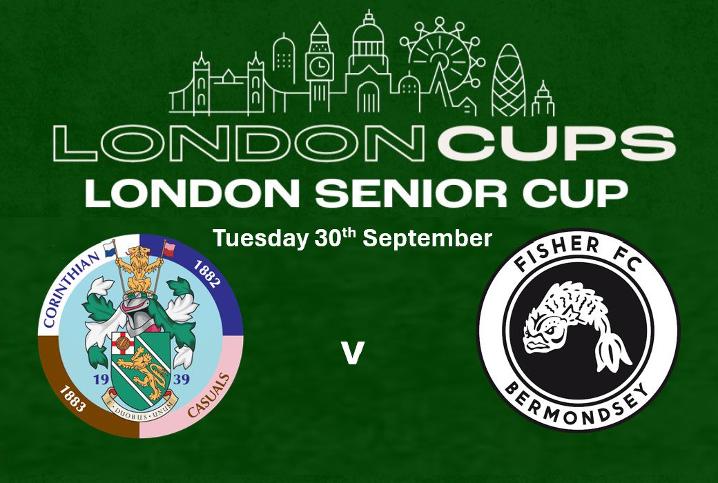In the London Senior Cup, we have received a bye in the first round. We will travel to meet Corinthian Casuals in the second round on Tuesday 30th September, with the winners at home to Met Police or Wingate and Finchley in the third round.