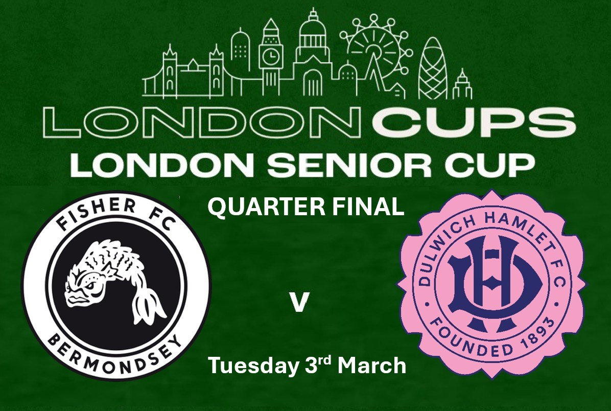 Following our win against Wingate & Finchley in the third round of the London Senior Cup, we will now face Dulwich Hamlet at home in the Quarter Final on Tuesday 3rd March at 7:45 pm.
