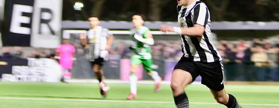 For all Fisher’s good work, it was Dulwich who stuck first when a ball into the box evaded the control of forward Luke Wanadio but fell close enough for Amadou Kassarate to pounce and in one movement lash the ball ferociously past Isaac Ogunseri in the Fisher goal, in a speed of finishing rarely seen at Fisher’s step five level. Fisher then had to absorb some heavy pressure as Dulwich looked to take the game away from them before the break, but some excellent defensive shape and the strength of Jack Gibbons on the right blunted the threat and saw Fisher through to the break a little unfortunate to be trialling, though struggling to really make an impact of the Dulwich defence either.
