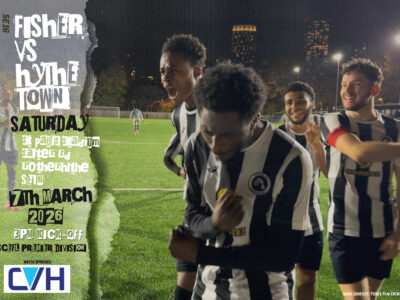 Fisher v Hythe Town – Saturday 7 March Saturday 7 March 2026 Editor Fisher v Hythe Town Saturday 7th March 3 p.m. kick off SCEFL Premier Division Match Sponsors: CVH Accountants Matchball Sponsor: Millwall Community Trust Address: Fisher... Read More0